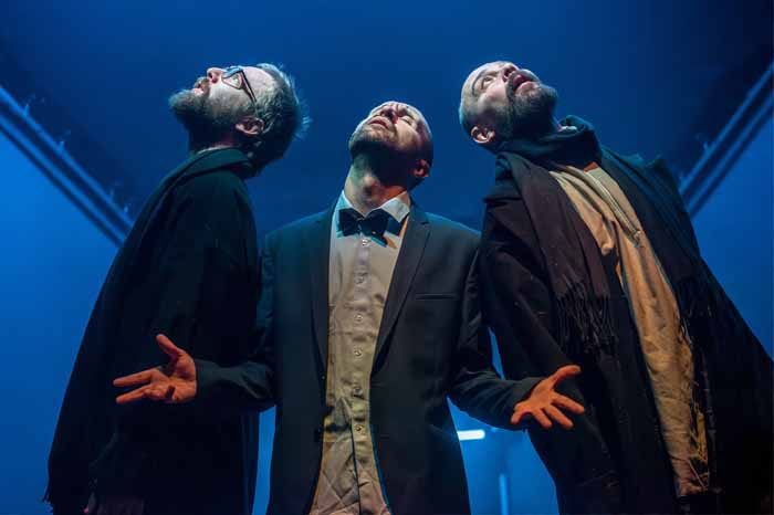 Спектакль «Москва-Петушки» — это путь по закоулкам сознания думающего человека, который зрительно представляется то электричкой, то порталом между миром живых и миром божественным в сценографии Виктора Малышева.