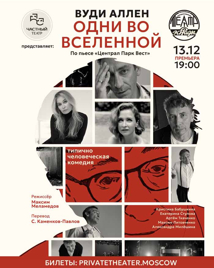 13 декабря в Театре Эстрады независимый проект «Частный театр» представляет новую интерпретацию пьесы Вуди Аллена Central Park West – спектакль «Одни во вселенной».