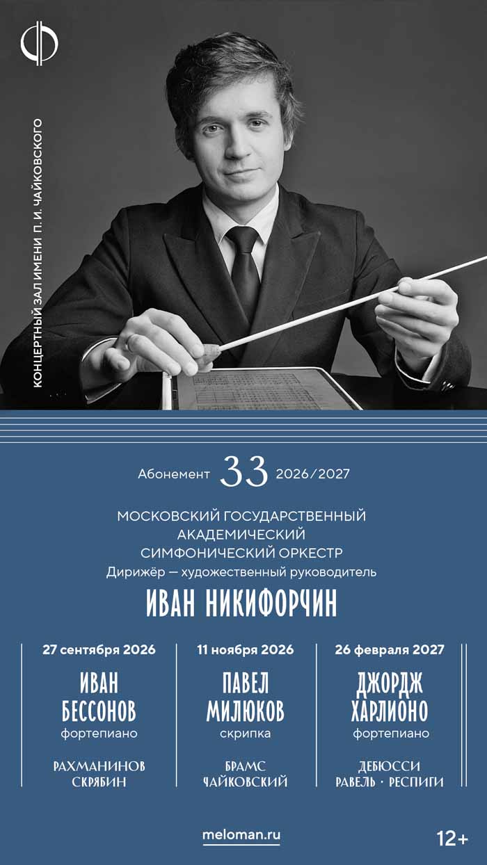 Вместе с МГАСО и Иваном Никифорчиным выступят солисты Иван Бессонов, Павел Милюков и Джордж Харлионо. Концерты пройдут 27 сентября и 11 ноября 2026 г. и 26 февраля 2027 г.