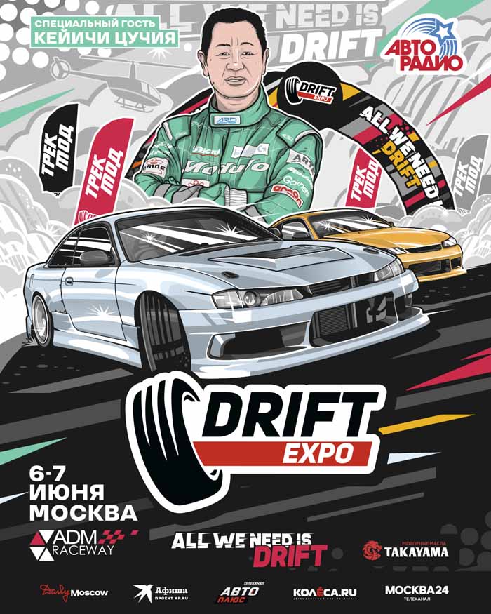 Звездный состав участников Drift Expo в 2026 году тоже невероятно порадует посетителей. Главная сенсация фестиваля: из Японии прибудет "король дрифта" Кэйичи Цучия, который является победителем множества чемпионатов и исполнитель одной из ролей в блокбастере "Тройной форсаж. Токийский дрифт". Визит многократного победителя множества престижных мировых чемпионатов стал возможен благодаря поддержке компании Takayama.