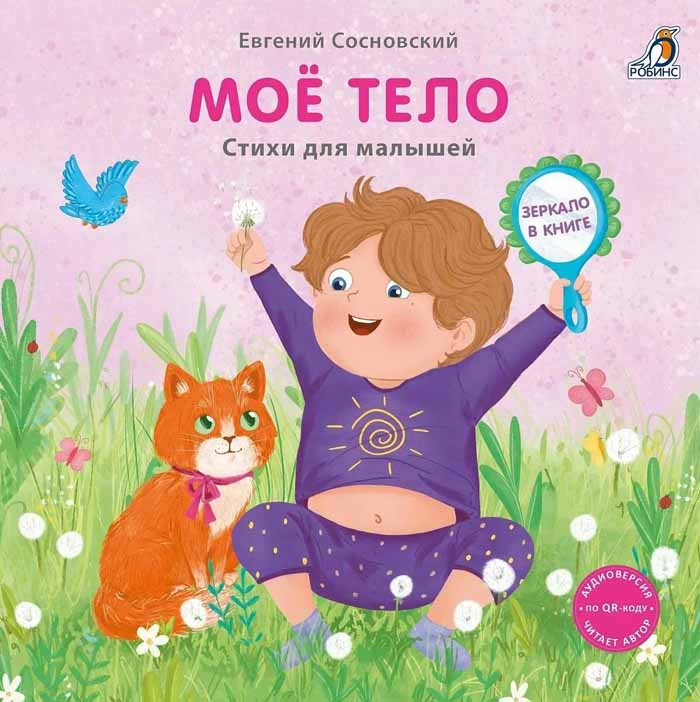 Книга «Моё тело» – настоящий помощник для малыша в познании себя. Через весёлые стихи и картинки дети узнают, зачем нужны глазки, реснички и что делает «счастливым» животик. Вот, например, об ушках: «Сбоку от макушки / Поселились ушки. / Слышу ими сказки, смех, / Слышу маму, слышу всех» Или о ресничках: «Чтобы пыль, песок и грязь / Не попали прямо в глаз, / Я реснички опускаю, / Ими глазки прикрываю». А еще вишенка на торте – зеркальце на последней странице книжки: в него любознательный малыш может рассматривать части своего тела.