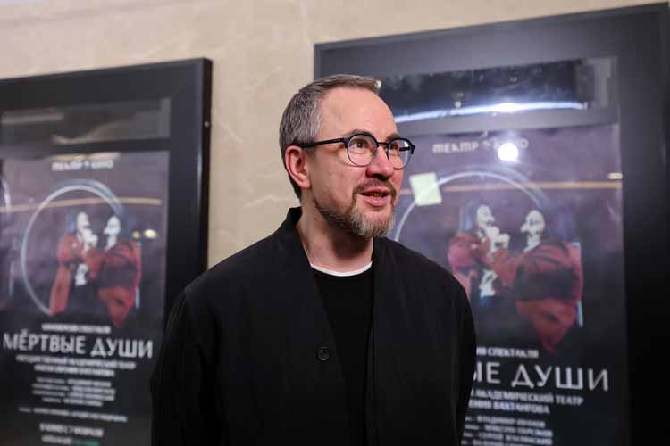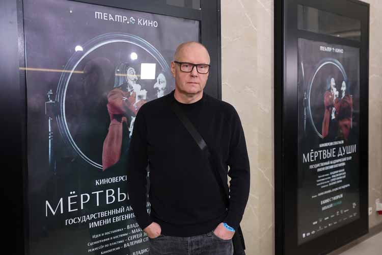«"Мертвые души " - удивительная работа невероятных артистов: Марии Ароновой и Владислава Гандрабуры. Они тонко и точно изображают всех персонажей поэмы Гоголя. Сценография настолько необычна, что создается впечатление, что ты не в мире старосветских помещиков, а на другой планете, где существуют такие же чичиковы, коробочки, плюшкины, ноздрёвы. Ощущение, что это персонажи планетарного масштаба, и они есть везде», - продолжил разговор с публикой Валерий Спирин, режиссёр киноверсии.