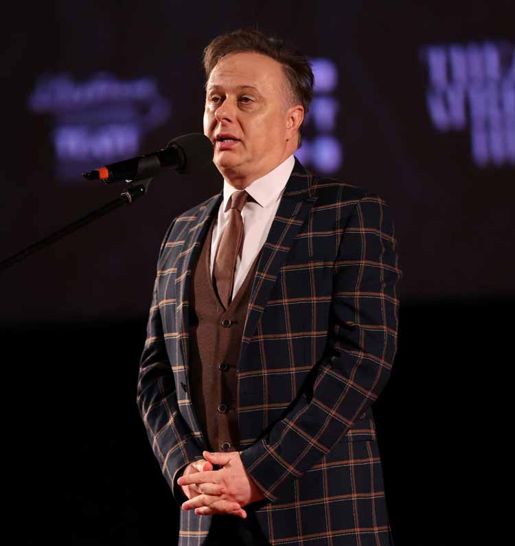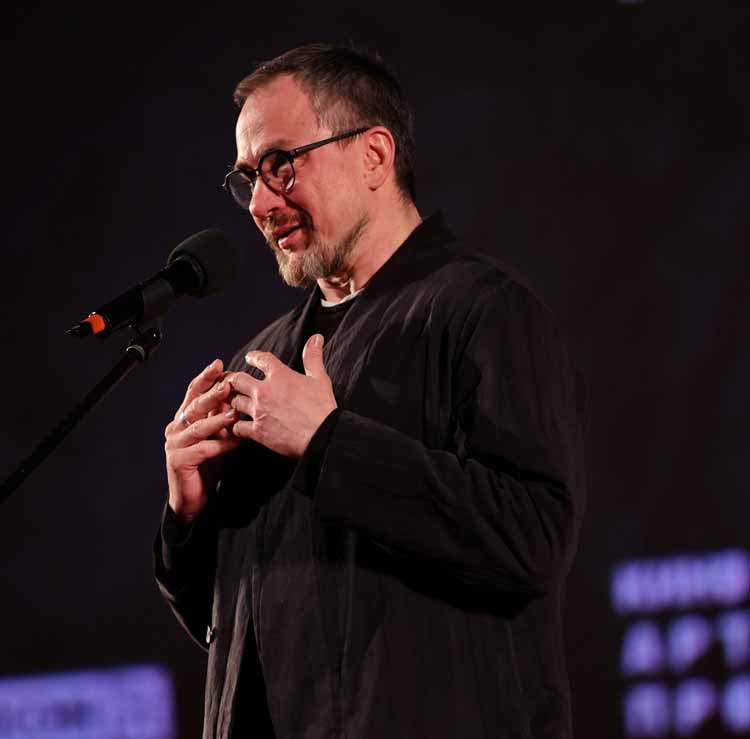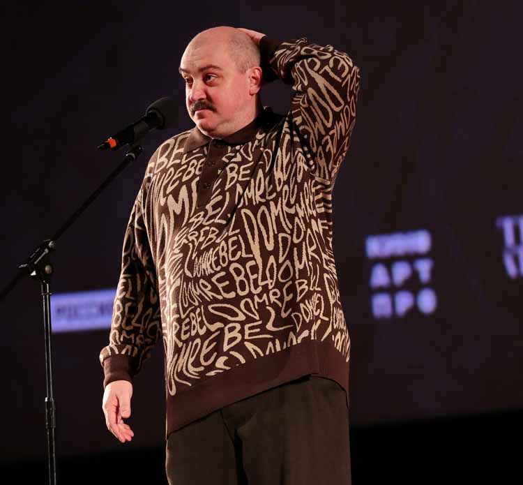 «Уникальность этой постановки в том, что редко, когда мы можем увидеть двух артистов, которые могут так искромётно переключаться, импровизировать, чувствовать реакцию зала, его настроение, и в то же время передавать атмосферу гоголевского текста и тот мир, который мы придумали в этом спектакле. Эта атмосфера и визуальный стиль были основаны на бумаге, листах, первый том, второй том, чёрная полоса, белая полоса нашей жизни, дороги, брички и всё, что связано с нашей страной и нашей историей. Ну а маски помогают передать образы и атмосферу действия. Артисты, выходя на сцену, открываю ящик, и начинается «Галопад», где каждый спектакль «Мёртвых душ» никогда не повторяется. Конечно, сравнивать спектакль и и его киноверсию нельзя, потому что спектакль рождается вместе со зрителями, когда они смотрят глаза в глаза артистам. Поэтому наша главная цель, чтобы, посмотрев эту киноверсию, зрители захотели бы увидеть спектакль вживую и перечитать Николая Васильевича Гоголя, задуматься, что-то в себе пересмотреть, чтобы состоялся внутренний разговор с самим собой», - сказал со сцены о главном Максим Обрезков, автор сценографии и костюмов.
