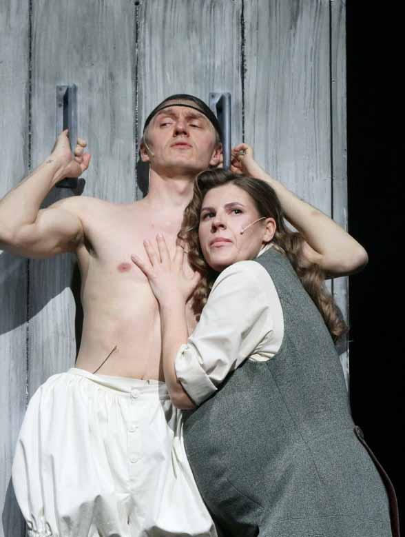А ведь есть ещё и переодевание героев спектакля прямо на глазах зрителя. Артисты сначала входят в роль персонажей Сервантеса, потом оказываются в роли актеров 30-х годов прошлого века. «Игра в игре», как справедливо отметила Яна Музыка – лучший театральный журналист страны.