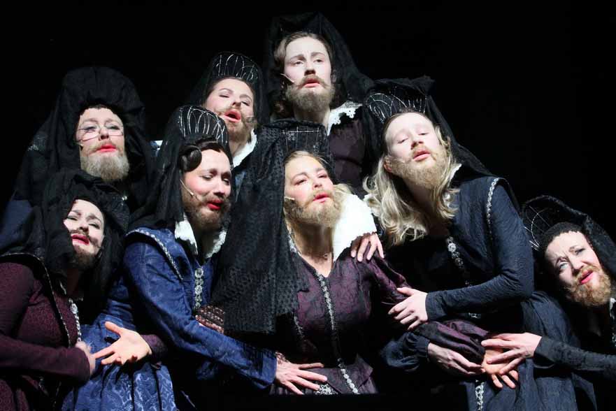 Из женской части постановки однозначно выделяется Ирина Пегова - Актриса 6, она же Карлик, Кот, Каторжница, Монахиня, Похоронщик. Пегова яркая, красивая, милая, женственная, чувственная - превосходна во всех смыслах этого слова. Ну и ее «фишка» в постановке - перевоплощение в бородатую Принцессу Долориду, это незабываемо!