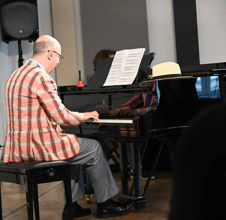 Прекрасным подарком для гостей пресс-конференции стало исполнение мини-оперы Джан Карло Менотти «Телефон». Это камерное произведение было сыграно солистами театра «Геликон-опера» Еленой Семеновой (сопрано) и Михаилом Егиазарьяном (баритон, фортепиано).