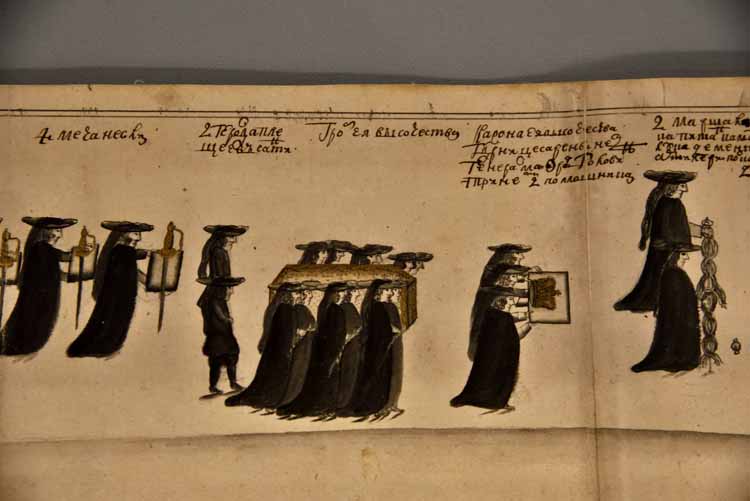 «Важнейшие государственные церемонии при царском и императорском дворе всегда были связаны с рождениями, свадьбами, приемами зарубежных послов, празднованием военных побед и, конечно, прощанием с монархом. Наш музей обладает огромной коллекцией экспонатов, связанных с этими торжествами. Мы не только покажем вещи, принимавшие участие в церемонии похорон императора, но и расскажем о его собственном интересе к траурным церемониалам», — отметила на пресс-показе для СМИ генеральный директор Музеев Московского Кремля Елена Гагарина.