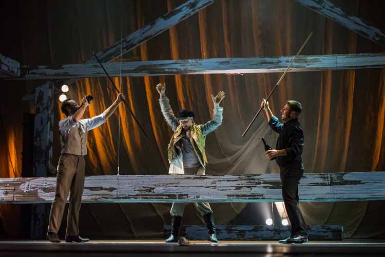«Стропила-балки, не касаясь друг друга, «разлетаются» в пространстве, размывая границы усадьбы до целой России. Современный Базаров, бунтующий, ищущий, мятущийся, нащупывая болевые точки своего времени, обращается к современникам в зале с честным разговором» - и этот «разговор» заполненный зал на Воробьёвых горах поддерживает, «вливается» в него и даже иногда «спорит» то ли сам с собой, то ли с героями постановки «Отцы и дети».