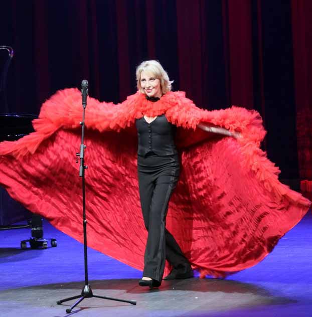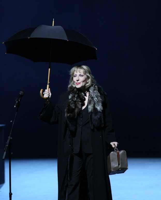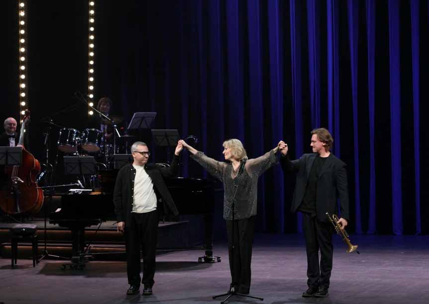 А начинался Юбилейный вечер «Вся эта суета» стихотворением «песня» в исполнении непревзойденной Юлии Рутберг, которая «презентовала» преданной публике спектакль-концерт в честь своего 60-ти летия. Под аккомпонимент (музыка Нино Рота) виртуозов Алексея Воронкова, Николая Мызикова и Евгения Полторакова на заднике сцены кадры с детскими фотографиями будущей ПРИМЫ Вахтанговского театра. И тут в лучах софитов на легендарный подмостки выход сама виновница торжества с песней «Куда ты скачешь мальчик?». Зал овациями и криками «Браво!» встречает Юлию Рутберг.