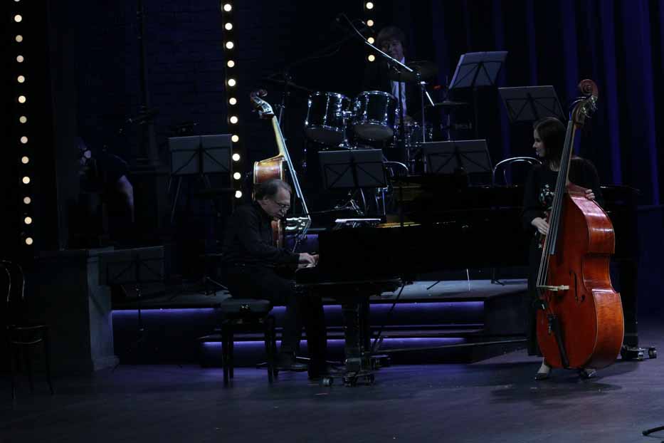 Гитарист Михаил Савичев «окунул» Вахтанговский театр и его зрителей в «испанские страсти», а трио музыкантов (пианист, контрабасист и ударник – о них в начале репортажа) представили «Джазовую импровизацию». После песни «Hello, Dolly!» Юлия из своего саквояжа зачитывает записки с вопросами, которые пришли из зала. Один из них – о родителях, на которые героиня вечера пообещала ответить в конце спектакля-концерта. Музыкальные поздравления Юбилярше продолжили Вероника Кожухарова (саксофон), Алексей Каляпичев (фортепиано) , Искандаржон Ахмедов (скрипка), Никита Кейман (альт), Вероника Рощина (скрипка) и Олеся Саблина (виолончель).