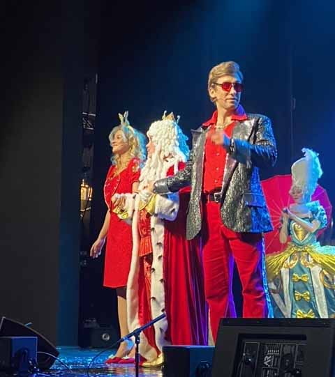 В основе спектакля лежит история о бродячих артистах, но в версии Театра иллюзии герои представлены как популярные музыканты. Среди них: Трубадур, Принцесса, Петух, Король со свитой, Сыщик и Разбойники.