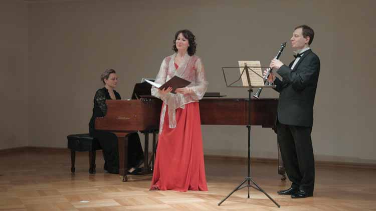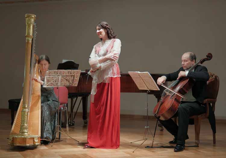 Программа концерта: Ф. Шуберт. Песнь Старца д/голоса и фортепиано, исполнитель - Александр Журавель. В. А. Моцарт. Ария Зарастро «In diesen hallen» из оперы «Волшебная Флейта», исполнитель - Александр Журавель. Ф. Шуберт. «Юноша у родника», слова Й.Заллиса д/голоса, виолончели и фортепиано. Р. Штраус. «Амур», слова народные. «Чёрных волос твоих крыло» д/голоса, виолончели и фортепиано. «Ничего», слова К.Хенкеля д /голоса и фортепиано. «Ненастье», слова Г.Гейне. Л. ван Бетховен. Трио д/виолончели, кларнета и фортепиано, II часть. Р. Шуман. «По утрам я встаю» из Г.Гейне. «В грозу и в бурю являлся милый…», слова Ф.Рюккерта. «Встреча в лесу», слова Й.Эйхендорфа. Л. Шпор. Фантазия до минор д/арфы соло. «Будь спокойно, моё сердце», слова К.Швайцера. «Томление духа», слова Э. Гайбеля. А. Дворжак. Концерт для виолончели с оркестром в переложении д/фортепиано, I часть. А. Дворжак. Ария Русалки из оперы «Русалка» д/голоса, арфы, виолончели и фортепиано. «Юмореска» д/арфы и виолончели.
