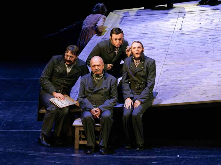 Хлестаков – «несколько приглуповат и, как говорят, без царя в голове, — один из тех людей, которых в канцеляриях называют пустейшими». Городничий – «очень неглупый по-своему человек», «хотя и взяточник». Городские помещики Бобчинский с Добчинским «очень любопытны» и «оба говорят скороговоркою». Жена городничего Анна Андреевна – настоящая «провинциальная кокетка». И вся эта «гоголевщина» под уникальную музыку Альфреда Шнитке и Владимира Устинова.