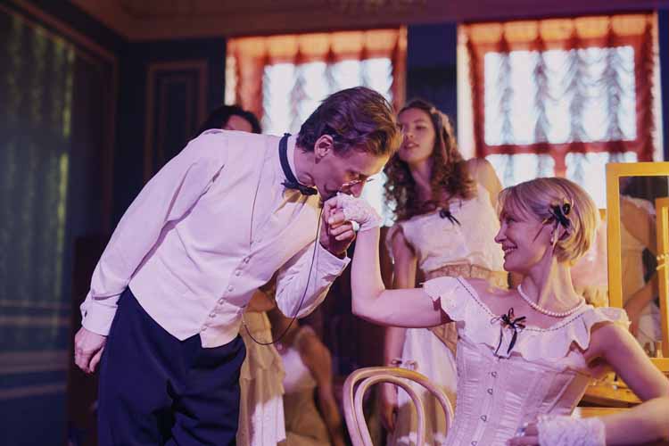 Перед спектаклем гостей театра разделяются на семь («Достоевский», «Горький», «Чехов», «Оливье», «Чайковский», «Татьянин день», «Толстой») групп, а проводниками во времени и пространстве для них становятся актеры: Ирина Алферова, Татьяна Веденеева, Александр Галибин, Владимир Шульга, Иван Мамонов, Джульетта Шабанова, Юрий Чернов, Вадим Колганов, Николай Голубев, Евгений Козлов, Иван Царёв, Татьяна Циренина, Кирилл Снегирёв, Ольга Грудяева, Вера Николаева и другие.