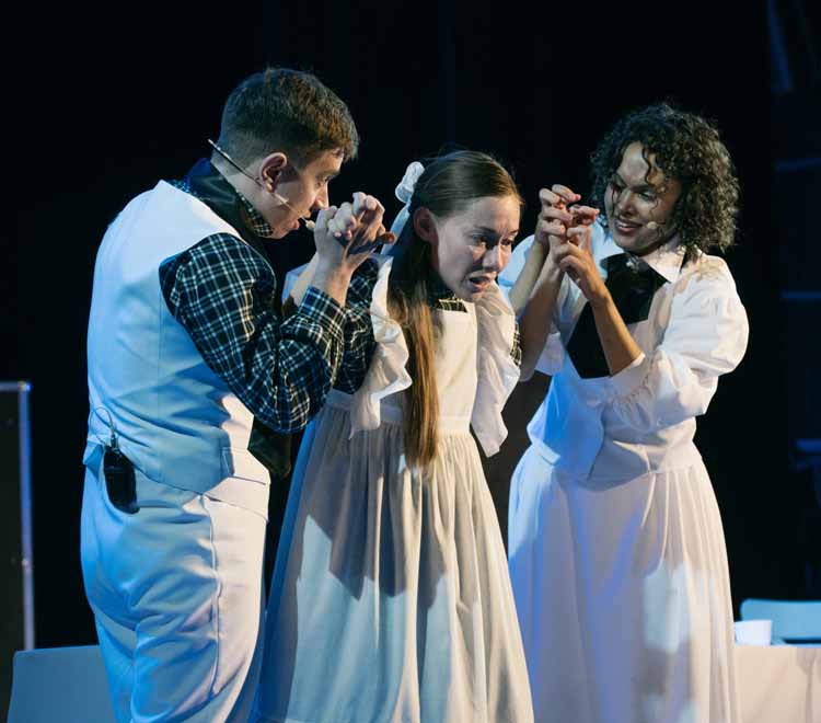 Как же они все ИГРАЛИ! Многоминутные овации, восторженные крики «Браво», слезы на глазах половины зала – низкий поклон вам Евгений Любицкий, Дмитрий Поддубный, Анастасия Козьменко, Наталья Ярыгина и Мария Сидорова. А дуэт учительница-ученица (Анастасия Козьменко-Мария Сидорова) это что-то за гранью понимания. Строгая, требовательная, невозмутимая, но справедливая (на своём пути к выздоровлению ребёнка) Анни играет так, что зал (многие, то уж точно) такого актёрского мастерства давно не видели на московских подмостках. А юная Элен – так и вовсе недосягаема в своём детско-юношеском восприятии окружающего мира, собственной болезни и отношении родни. «Проживание» ролей Анастасией и Марией - это и есть та самая «система Станиславского», которая, к сожалению, так редко, в последнее время, встречается на сценах столичных театров.
