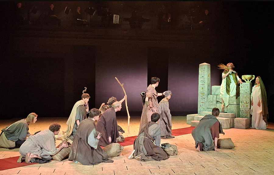 Историю отца Иосифа, Иакова, его любовь к девушке Рахиль и рождение 12 детей от 4 разных женщин, взаимоотношения Иосифа с братьями, конфликты, предательство и продажа героя в рабство, его жизненные перипетии и, наконец, успех Иосифа при фараоне, прощение и спасение раскаявшихся братьев, которые без помощи героя были бы обречены на смерть вахтанговцы рассказывают и показывают на пределе человеческих и актерских возможностей, чем и пленят зрителя. Впрочем, в театре Вахтангова практически всегда так.