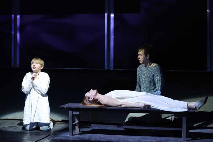 На сцене - полный состав актеров Театра на Малой Ордынке (Старец Никандр — Михаил Клюшкин, Устина — Полина Каменева), плюс приглашенные звезды, например Валерий Николаев — в амплуа Рассказчика и Лавра. Отдельная «звезда» - это 15-летний Климентий Кривоносенко в роли отрока Арсения – бесподобная актерская игра!
