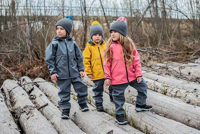 Верхняя одежда шьется из современного высокотехнологичного материала софтшелл. Комбинезоны, куртки и штаны из этой трехслойной ткани легкие и устойчивы к действию влаги, ветра и низких температур. Одежду из софтшелла можно надевать ранней осенью прямо поверх леггинсов и футболки, а ближе к зиме и первым заморозкам - с утепленным комбинезоном или термобельем и флисом.