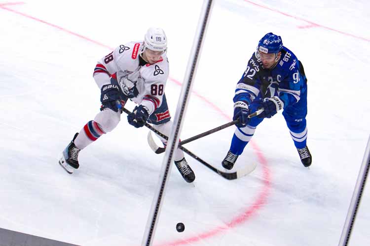 «Динамо» со старта имело внушительное территориальное преимущество, правда, без последствий для гостей. «Химики» в свою очередь противопоставили бело-голубым высокие скорости и агрессивный хоккей, переместив «логистику поединка» на территорию соперника. Плюс ещё возникли проблемы с освещением и потому вратарь динамовский Моторыгин, пусть и среагировал на бросок Митякина, но поймать чёрный каучуковый диск не смог.