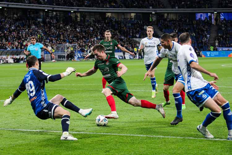 Красно-зелёные в первой же атаке открыли счёт: Воробьёв получил пятнистого на правом краю штрафной и «прострелил» в центр, а Пруцев метров с 12 неотразимо пробил в ближний угол ворот Лунёва. Бело-синие в лице Маухуба ответили выходом сам на сам - марокканец пробил в плечо Митрюшкину. Через 10 минут тот же Маухуб ворвался в штрафную с правого края и «прострелил» на дальнюю штангу, Сергеев пробивал с пяти метров - вратарь спас «Локо». Затем уже сам Сергеев после проникающей передачи Миранчука вышел на свидание с Митрюшкиным, обыграл голкипера и пробил с острого угла – «железнодорожник» Сильянов выбил мяч на угловой. И только в следующей атаке хозяева счёт сравняли: Сергеев после навеса с правого фланга пробил головой в падении - Митрюшкин спас свои ворота, Иван с полуметра «пырнул» круглого мяч в сетку, но Антон ногой выбил кожаную сферу. После просмотра ВАР гол засчитали – мяч полностью пересёк линию гостевых ворот. И почти сразу динамовцы вышли вперёд: неутомимый Сергеев после навеса Касереса с правого фланга пяткой откатил «снаряд» на Бителло, который с шести метров низом катнул в противоход вратарю. Перед свистком на перерыв Руденко после передачи Батракова оказался на ударной позиции в штрафной, но упал на газон. Левников не свистнул, но ВАР позвал арбитра к просмотру. В итоге Батраков с «точки» легко переиграл Лунёва.