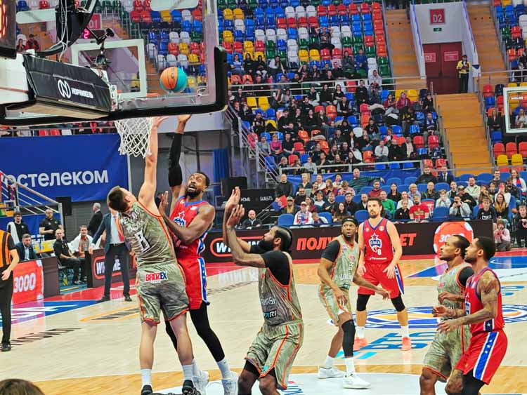 Три с половиной тысячи любителей игры в оранжевый мяч во Дворце спорта «Мегаспорт» стали свидетелями бескомпромиссной борьбы под щитом, агрессивной «стычки» на паркете и фееричных «трёхочковых» от представителей баскетбольных школ Москвы и Екатеринбурга.Единая лига ВТБ. Регулярный чемпионат. Москва. ЦСКА 95:72 «Уралмаш». Лучшие игроки команд: Кливленд и Нэвелс – соответственно.