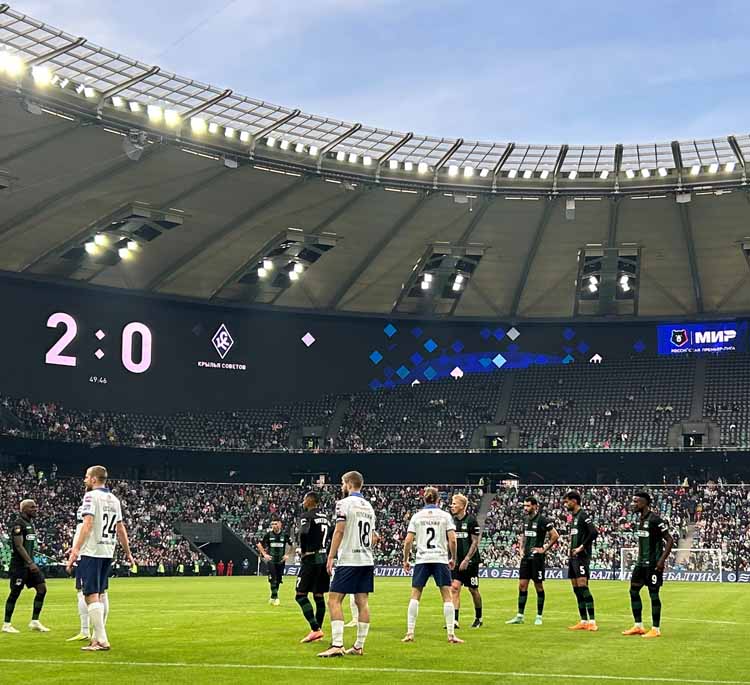 В начале второго тайма случился очередной казус с ВАР. Сначала они «тормознулись», а затем очень долго рассматривали эпизод с нарушением Печенина на Батчи. Ну, а Сперцян уверенно реализовал» «приговор» с «точки», после того, как «телевизор» судьи перестали смотреть. На 60-й минуте произошло то историческое событие, о котором в начале репортажа. Колумбиец поражает ворота «КС» ударом из штрафной, получив пас от Оласы – 22 тысячи на стадионе буквально взревели – есть РЕКОРД, причём - двойной! И только после этого самарцы удосужились создать единственный момент у ворот южан: Лысов «пристрелялся» с острого угла, но Агкацев решил сыграть «на ноль» в этом матче, и отразил удар гостя Краснодара. А на финише матча Тормена «подписывает протокол игры» ударом головой после подачи от углового флажка. «Краснодар» возвращает себе первую строчку, а «Крылья Советов» увозят с юга «баранку».