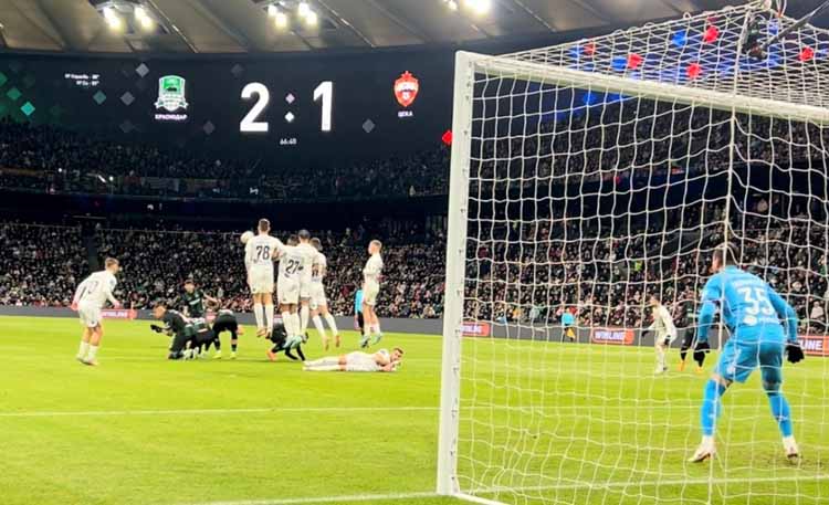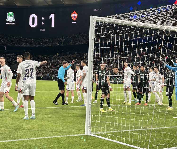 А во втором тайме удаление всё таки случилось - Мойзес «схлопотал» вторую желтую. Справедливости ради, стоит сказать, что и Кордоба, и Черников, и Жоао Виктор могли отправиться «таким же путём», но Левников их пожалел. Последние 45 минут футбола в РПЛ на красавце-стадионе Галицкого выдались ещё более интенсивными, атакующими, интересными и содержательными, чем первые краснодарско-московского противостояния. Спустя 5 минут после чаепития Виктор Са поражает ворота ЦСКА после подачи Сперцяном углового – защита армейцев сработала на «2». Затем Мойзес и Черников «закусились» в центре поля, даже Челестини пришлось выскакивать на газон, что бы разнять дерущихся и толкающихся. В средине последнего тайма чемпионата по игре миллионов Батчи поражает ворота ЦСКА дальним, очень дальним, ударом низом в ближний угол после паса от Оласы – Акинфеев, скорее всего, просто не поверил, в то, что с такой дистанции «быки» могут угрожать его воротам. После этого «Краснодар» успокоился, и начал играть на удержание счёта, чем сильно огорчил своего тренера – Мусаев буквально гнал своих к воротам москвичей. Не послушались южные футболисты своего наставники и пропустили второй гол от игравших в меньшинстве цсковцев. Последний гол 2025 года на счету Алвеса, который грудью «внес» футбольный снаряд во ворота Агкацева буквально с метра после скидки Мусаева.