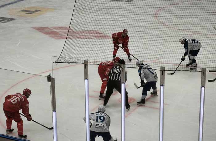 Восьмитысячный «Мегаспорт» на протяжении трёх периодов наслаждался азартным, бескомпромисным, волевым, боевым и многоголевым хоккейным противостоянием подопечных Баркова и Кравеца. Судьи (Краоткин и Юдаков) ледового противостояния Москвы и Астаны никоим образом, с соблюдением всех правил игры в хоокей, не мешали голеадорам «прошивать» сетки вратарей Георгиева и Шила с Шутовым. Казахской команде даже пришлось поменять по ходу «ледового побоища» стража ворот – не помогло, «гладиаторы» победили «барсов».