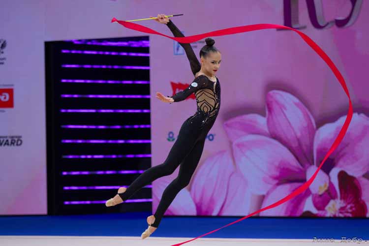 В одиночной программе с лентой Борисова победила, набрав 30,900 балла. Второе место заняла также представительница России Ульяна Янус (29,950), бронзу завоевала Дарья Веренич (29,200).