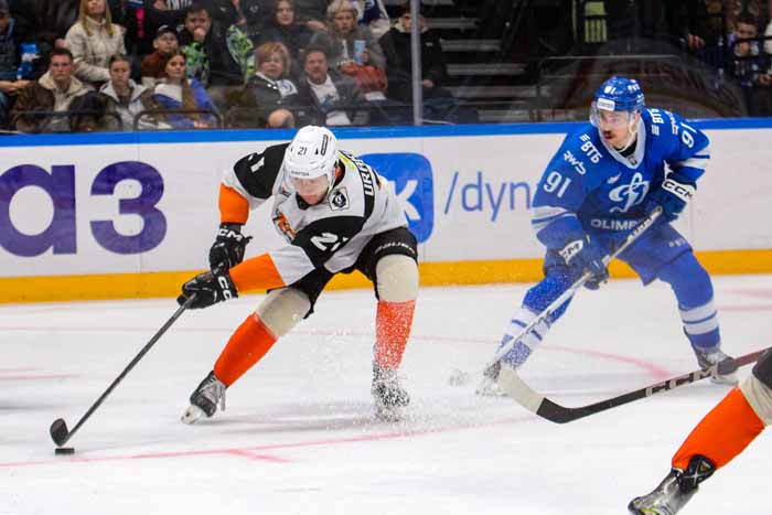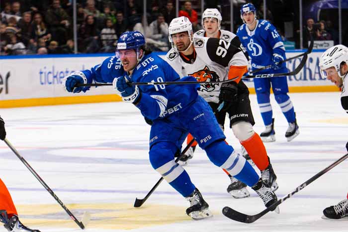 КХЛ. 13 неделя. Регулярка. Москва. «Динамо» 4:2 «Амур» (Хабаровск). Шайбы: Сикьюра Дилан 2’, Сикьюра Дилан 50’, Уил Джордан 57’, Комтуа Максим 58’ - Талалуев Илья 19’, Броадхёрст Алекс 19’.