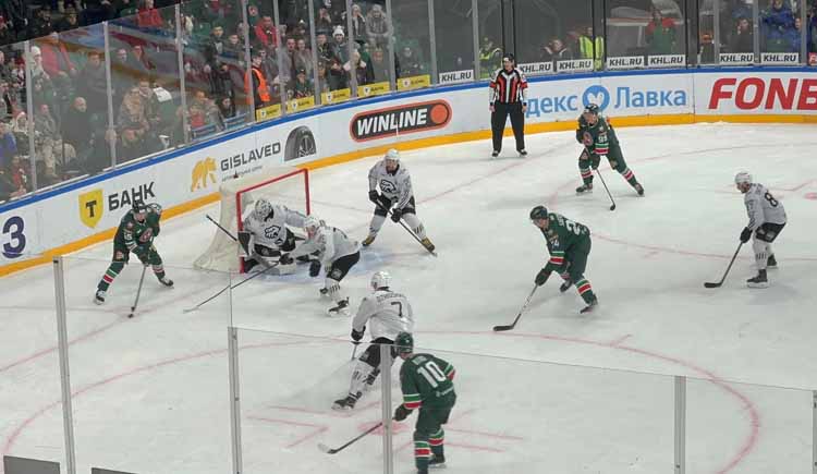 Хоккеисты Галлана и Гришина устроили «рубку» на питерском льду. Судьи Акузовский и Дударов не мешали 4,5 тысячам любителей игры клюшками с шайбой наслаждаться вратарским мастерством Кареева и Долганова – нижнекамец вышел победителем в этой дуэли.