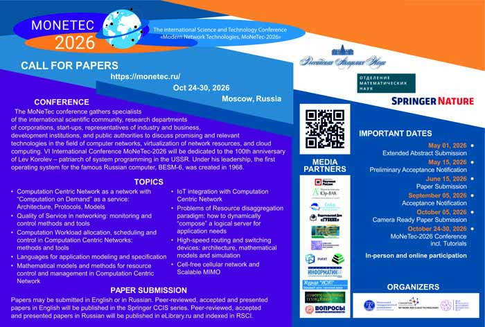Конференция MoNeTec-2026 ориентирована на содержательное обсуждение результатов в области сетевых и распределённых вычислительных систем и формирование актуальной исследовательской повестки. Приглашаем авторов представить результаты своих работ в формате extended abstracts. Приём заявок открыт до 1 мая 2026 года.