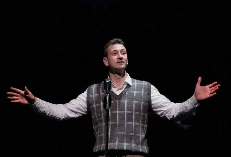Спектакль начинается весьма нестандартно: со стендапа главного героя в исполнении Евгения Шевченко, начавшего общение со зрительским залом и вовлекающего его в некий интерактив. А после, на основе очевидных реакций, он вроде как через рассказ из жизни своего брата, который где-то в тайге добывает нефть и попадает в неприятную историю с медведем, плавно переходит к вопросам чудесного и нормального, и насколько очевидно то и другое.